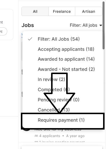 Under the list of jobs, select Requires payment from the filter dropdown list.